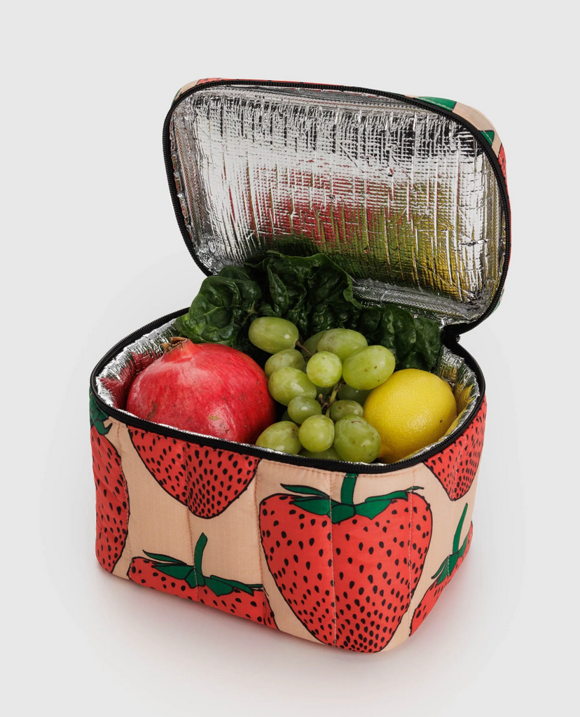 Heading out with drinks and snacks? Pack those frosty goods in a puffy lunch bag. It's insulated to keep your lunch, snacks and other treats cool and cushioned. Everything will be chill :-)